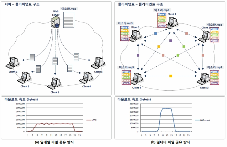 반연 Bittorrent는 하나의 파일을 여러 조각으로 나누어서,